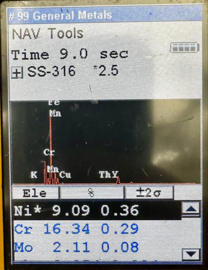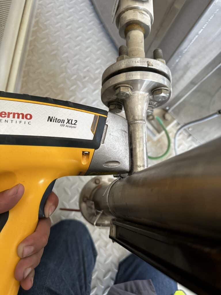 Positive Material Identification (PMI) is a nondestructive means of determining the chemical composition of metals. In a global sourcing environment, material can inadvertently be mixed up and cause serious issues while in service. A2Z NDT technicians can quickly and accurately determine the chemical composition of many different metals. A2Z NDT Inspection Service has experienced technicians that can provide this service anywhere.