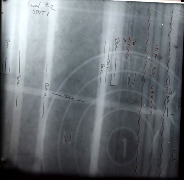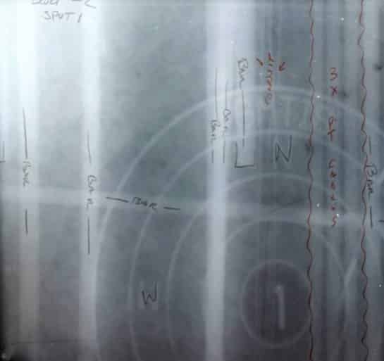 X-rays performed on a concrete slab prior to core drilling.